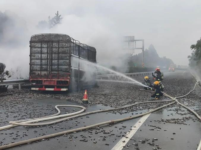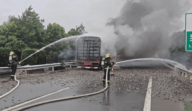满载锂电池货车起火,货物像“烟花”般从货箱“喷出”