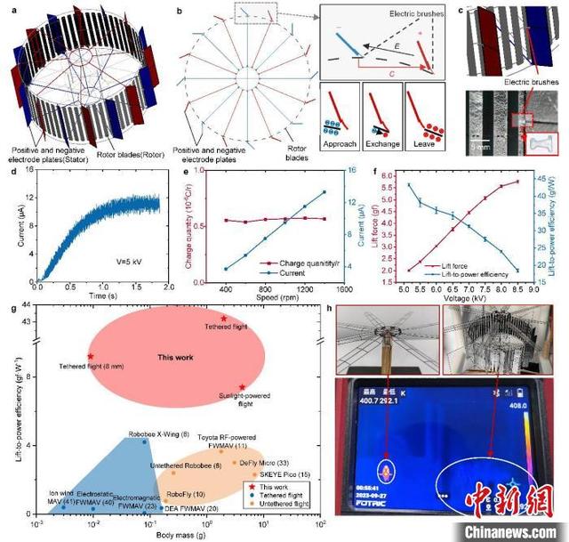 静电飞行器的静电电机结构设计和效率特性。科研团队/供图