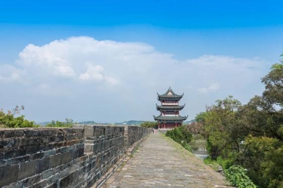 全国保存最为完好的宋代砖城墙!始建于晋代。现保存较完整的砖城墙,修建于北宋年间,城墙平均高7米,从东门经八境台到西门长3.6千米。整个城池开有西津门、镇南门、百胜门、建春门、涌金门5座城门。清朝咸丰年间,为了防止太平军攻城,又在赣州城的主要交通要道口兴建了东门、小南门、大南门、西津门、八境台5座炮城。