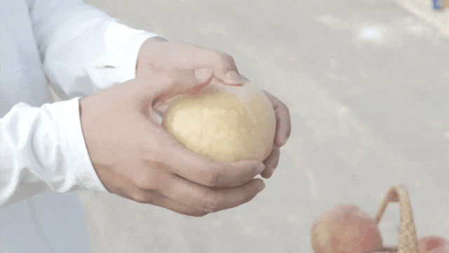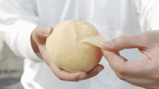 ②切忌用手指按压,尽量轻轻拿起,因为阳山水蜜桃汁水充足易留下印子。
