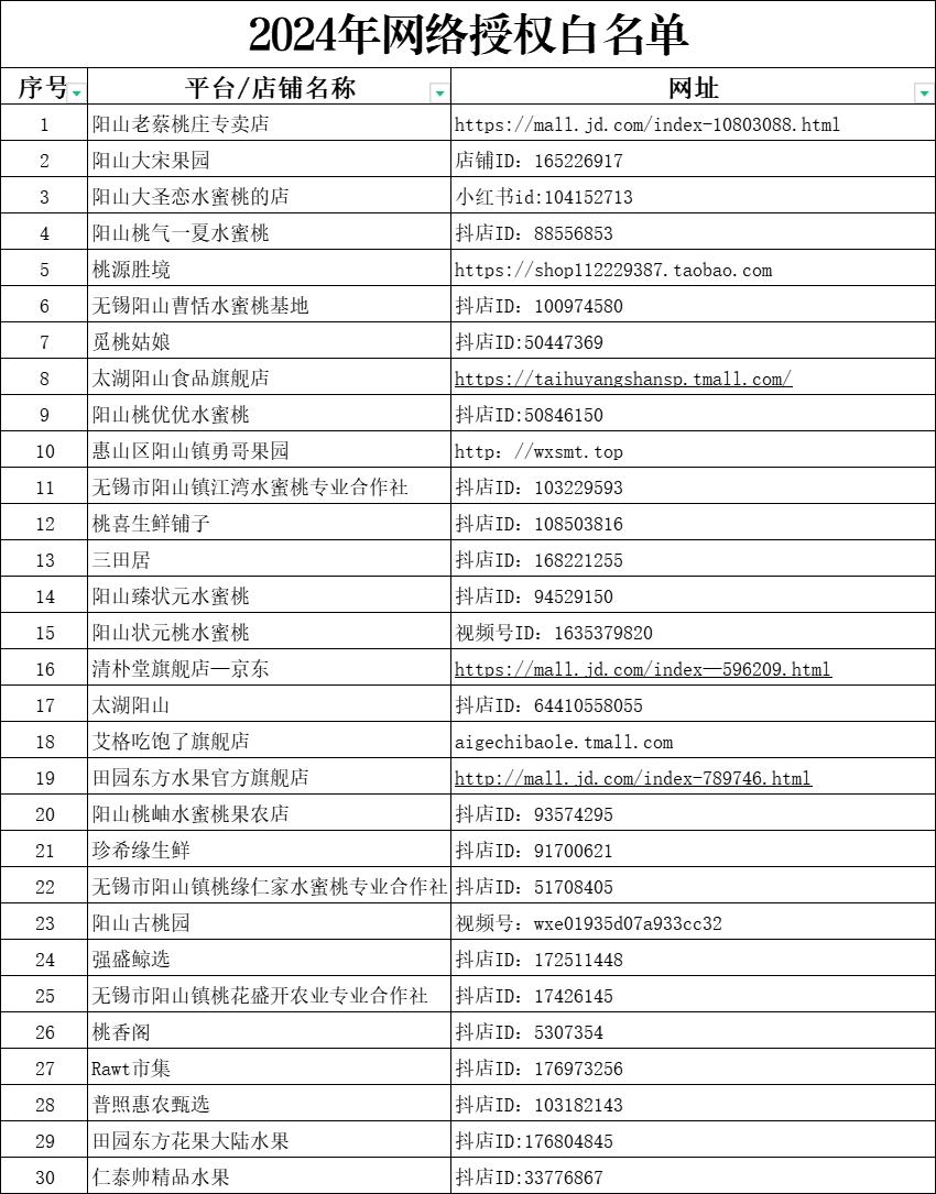 网络销售阳山水蜜桃“白名单”