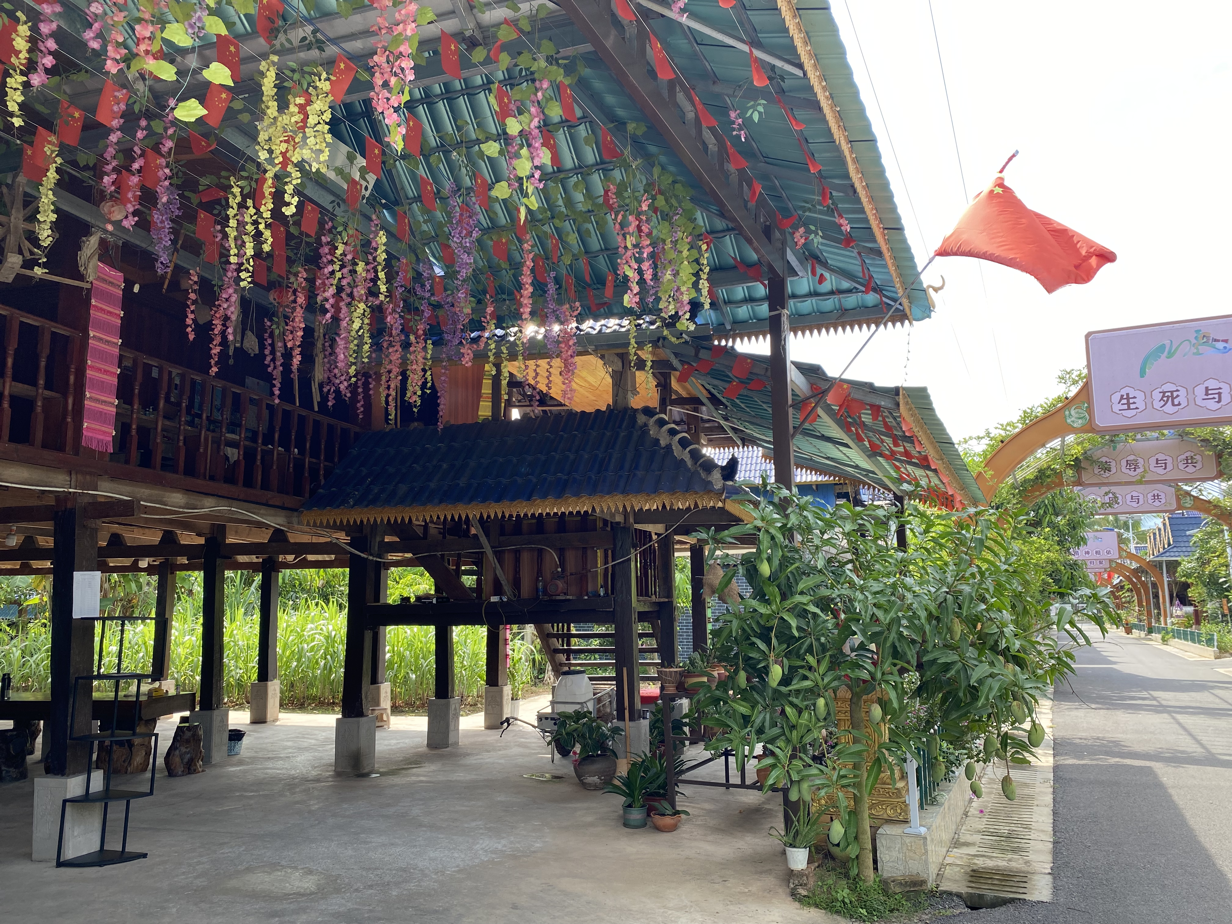 一排排干栏式傣族木屋,绿树环绕、繁花盛开、街道整洁、瓜果飘香……云南西双版纳傣族自治州勐腊县勐满镇勐满村曼烈村小组,位于中老边境一线,属于传统傣族村寨,与老挝勐新县距离仅有5公里。