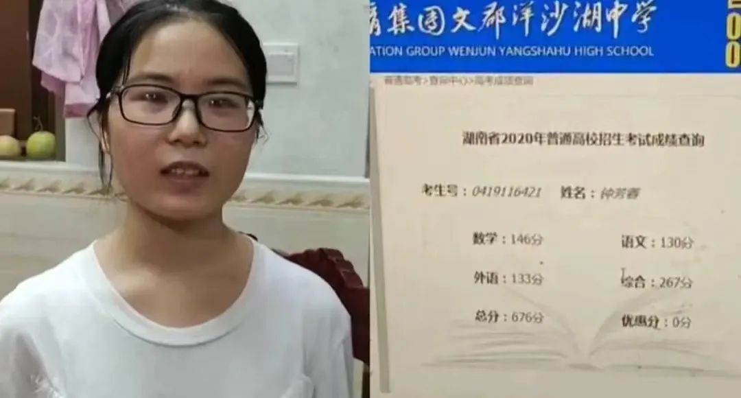 因为这个刻苦读书的女孩,以676分的总成绩,夺得湖南省文科第四、耒阳市的状元。