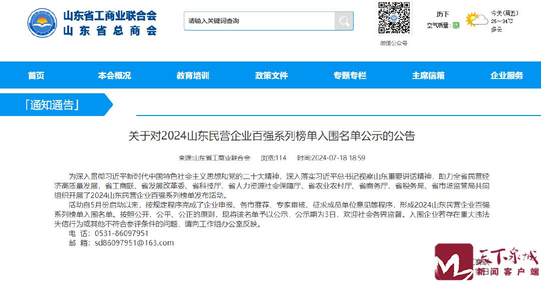 榜单梳理:天下泉城新闻客户端原标题:《2024山东民营企业百强系列榜单公示,济南入围企业名单来了!》