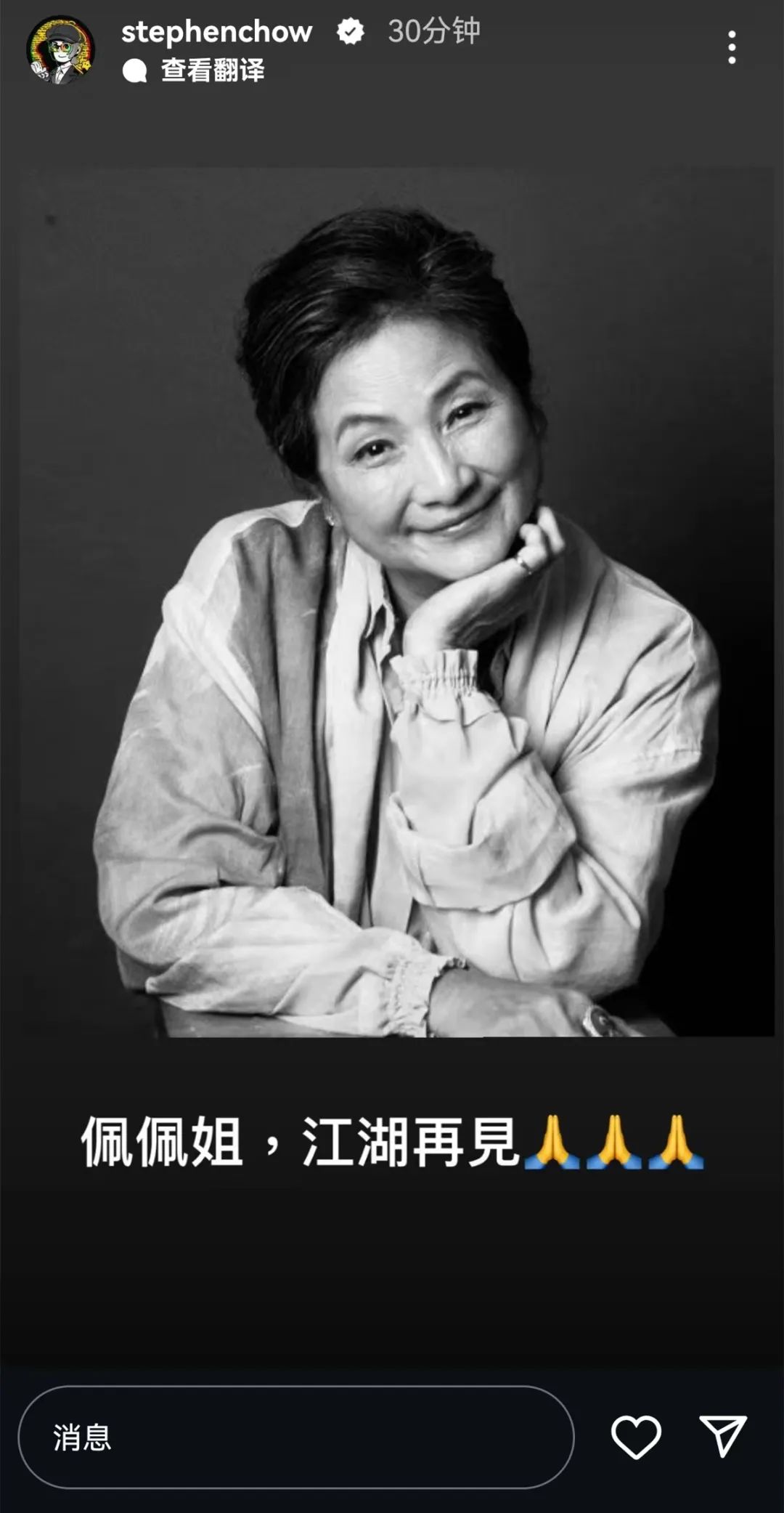 郑佩佩去世消息发出后,周星驰、章子怡、惠英红、李若彤、刘涛等多位与“佩佩姐”合作过的艺人发文悼念。