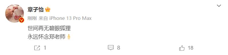 章子怡:世间再无碧眼狐狸,永远怀念郑老师。