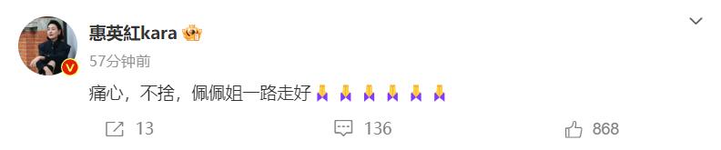 惠英红:痛心,不捨,佩佩姐一路走好。