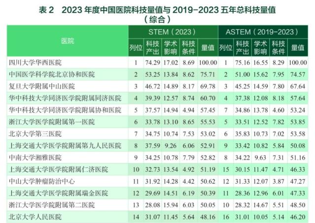 中国医学院校/医院科技量值(STEM) 是由中国医学科学院于2018年首次创立的医学科技评价的新概念与系统理论,旨在以正确的科技评价导引不同医学科技创新主体的科技行为。这一评价体系探索形成了符合医学科技发展规律、基于中国国情的医学科技评价体系,也是世界上唯一的、系统化的专门医学科技评价体系。2023年度中国医学院校/医院科技量值(STEM)沿用统一标准、统一来源、统一方法,从科技产出、学术影响和科技条件三个维度构建评价体系,共对我国2943家三级医院开展调查研究,涵盖心血管病学、呼吸病学等共34个临床医学二级学科及部分三级学科。南大一附院2023年度中国医学院校/医院科技量值(STEM)、2019-2023五年总科技量值(ASTEM)排名均进入百强,体现了医院在医学科技领域的综合实力。这一成绩的取得,是医院在党政坚强领导下,近年来在科技创新规划、政策举措和成果产出方面的显著体现。在过去五年中,医院持续完善创新管理制度,构建科研服务管理、共享科研平台、开放学术交流、科技创新辅导、科技项目培育、科技成果奖励六大支撑体系,精心谋划各级各类重点重大项目,分类分层培育科研项目,以解决临床科学问题为主线,推动多学科交叉融合,在科技项目申请和立项、科研平台建设、科技成果产出等方面取得了显著成绩。
