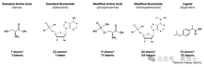 -非标准氨基酸或核苷酸(甲基化核苷酸、翻译后修饰的氨基酸等):每个原子1个token