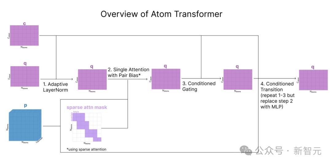 AF3使用一个名为原子Transformer的模块,在原子级别应用注意力机制时