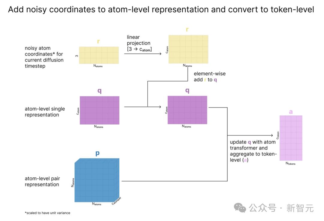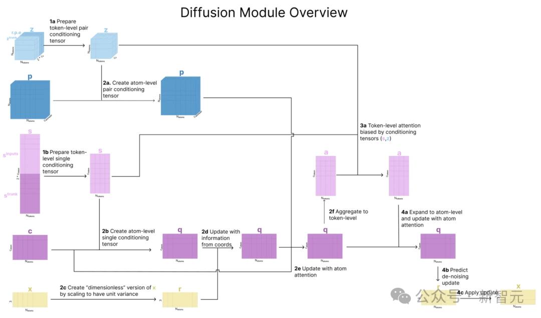 AF3论文将其扩散过程分为3个步骤,包括从token到原子、回到token、再回到原子。