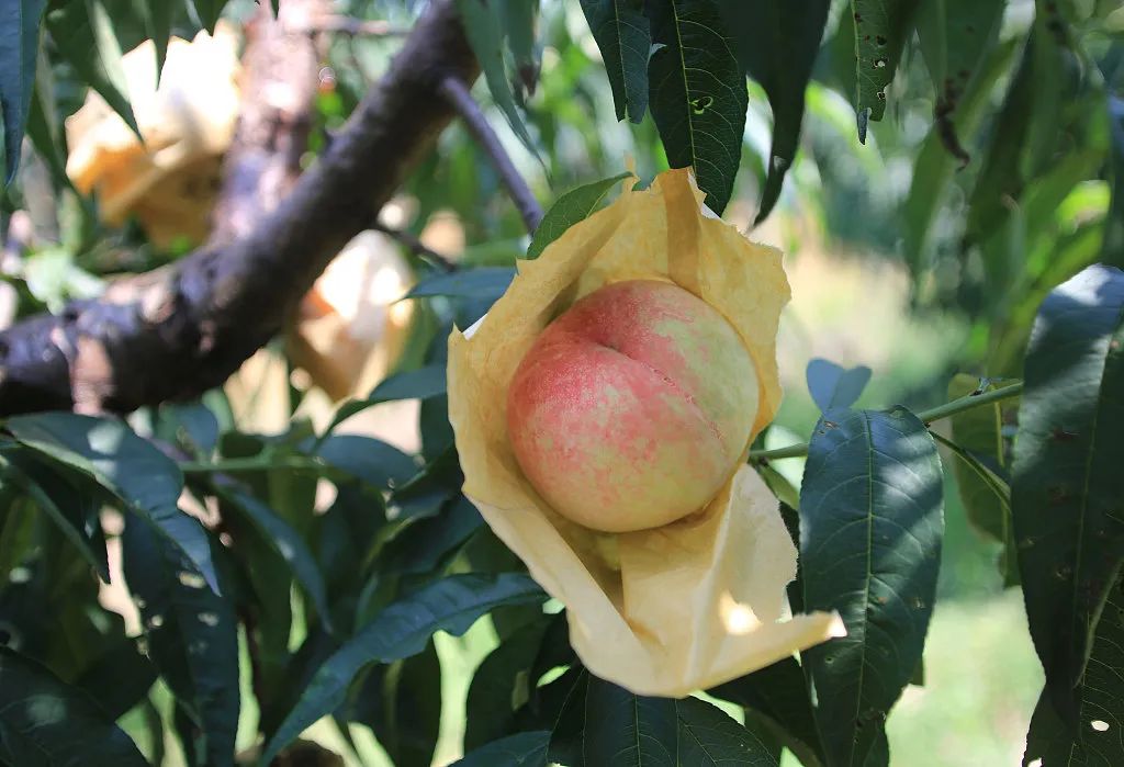 另一方面,更离不开阳山人自身的努力。走进桃林中,只见一个个用纸袋“套着”的水蜜桃挂满枝头,香甜四溢,扑面而来。“为保证每颗水蜜桃的品质,我们会采用纯物理方式防虫、防鸟、防晒伤,每个长势良好的蜜桃都需要进行人工套袋,保证蜜桃良好生长。”当地果农介绍说,如此成长起来的水蜜桃不仅外形美观,甜度也提升不少。