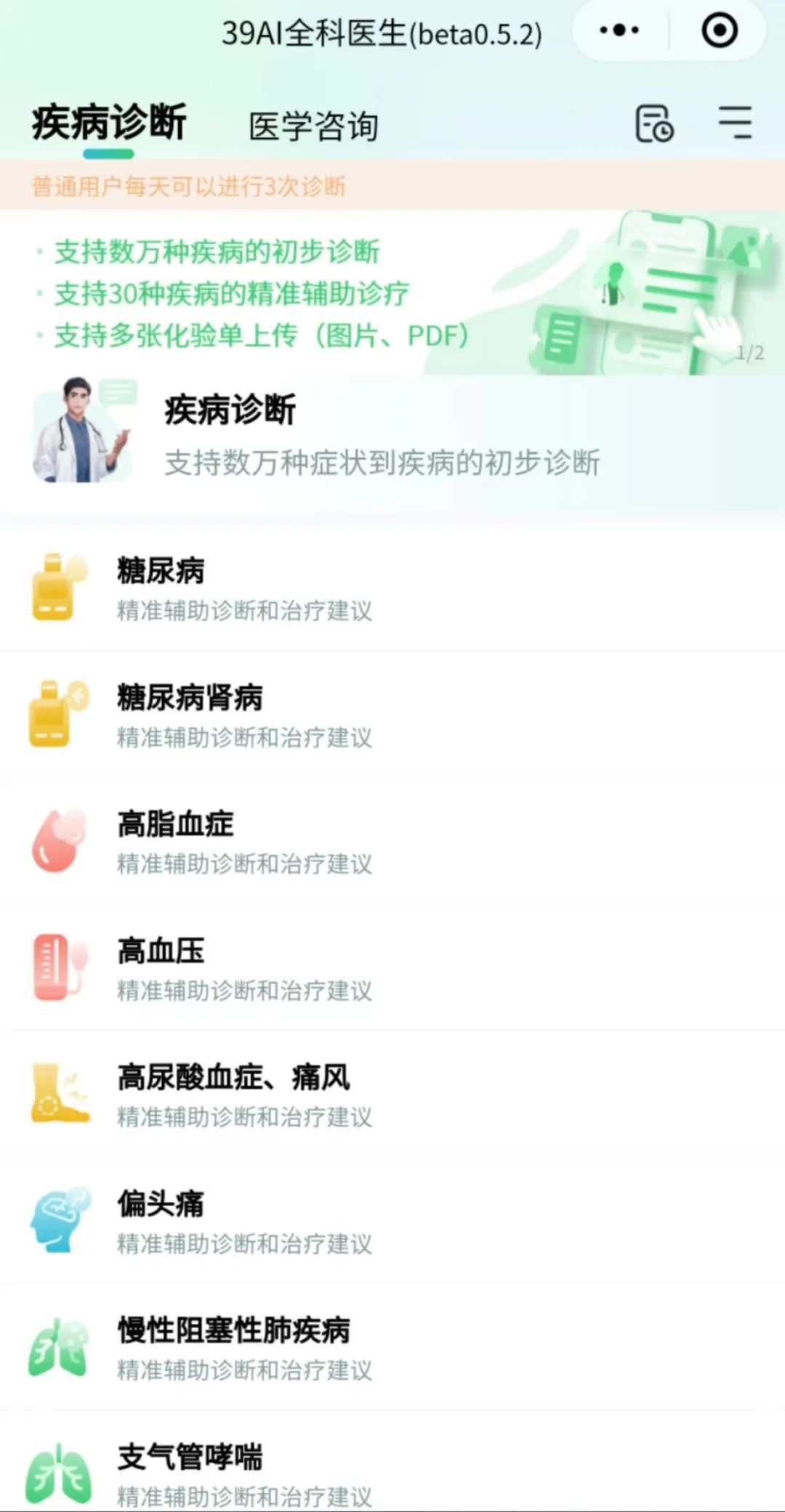 如果不清楚自己是否有糖尿病,可点击下方卡片进行疾病辅助诊断,支持上万种疾病初步诊断,多张化验单上传分析▼