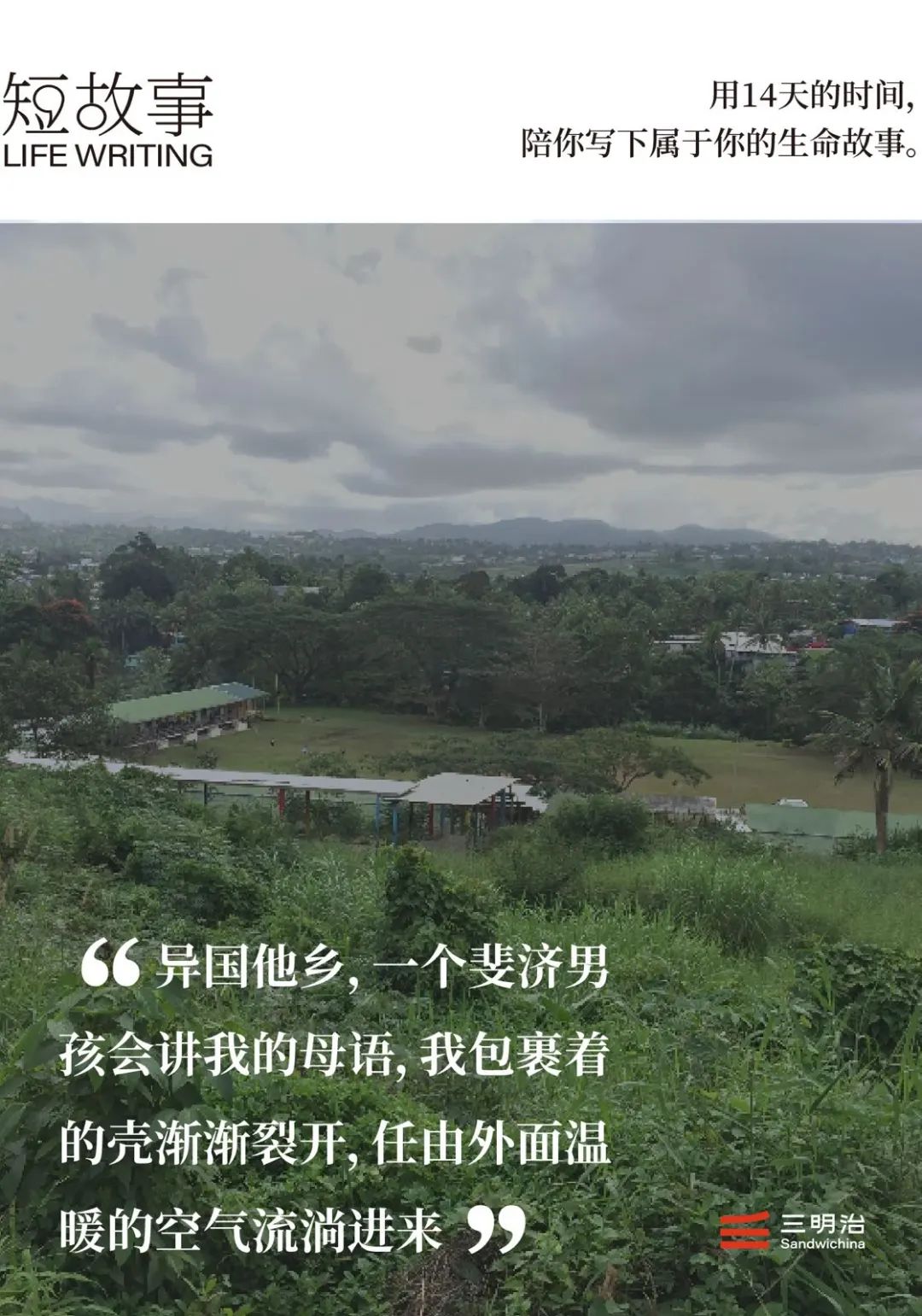 异国他乡,一个斐济男孩会讲我的母语,我包裹着的壳渐渐裂开,任由外面温暖的空气流淌进来。