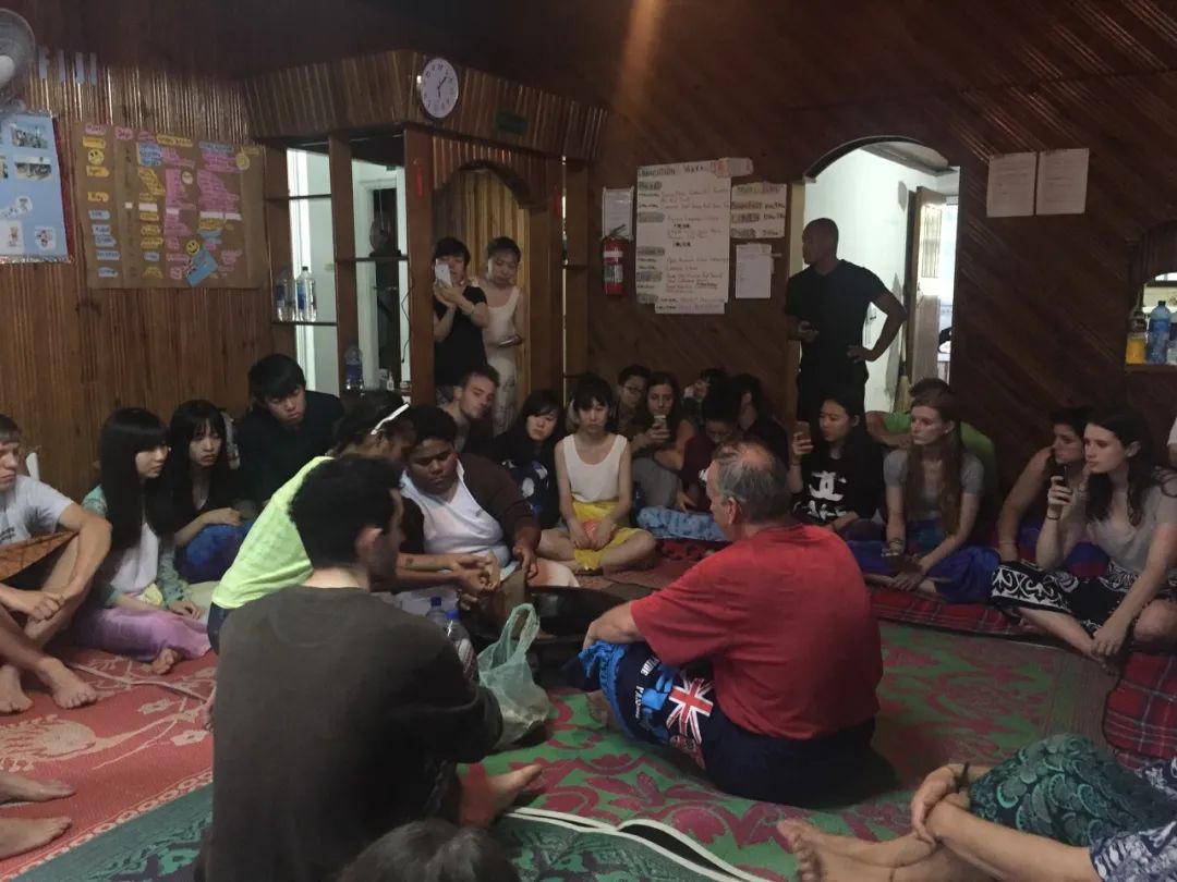 协调员Eta召集大家集合,客厅铺着好多条色彩鲜艳的毯子,大家围成圆圈坐在一起。我大致数了下人头,有30多名志愿者。第一个环节自我介绍,Eta点名说从我开始,我竟然有一种中大奖的快乐,欣然接受并即兴完成了。我发现自己实际比想象中的要勇敢,想象中的那个我大概率会紧张和局促不安,然而身处当时的环境,我的兴奋大于畏惧。