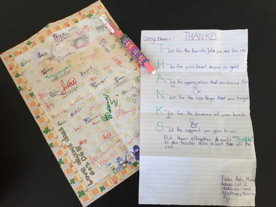 学生们为我写了一封长长的感谢信,信的具体内容已经模糊,但Pual为我朗读的画面依然清晰。一遍读完,Paul自言自语道:“Angel可能没有完全听懂我讲的英语,我再来一遍。” (Paul的英文略带当地口音,之前他说话快时,我有表达过没听清楚,他还记得。)被感动到想哭的我突然被他逗笑了,学生们也在下面大笑起来,我们一起听着Paul第二遍声情并茂的朗读。