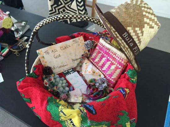 课间,学生们纷纷来找我,送我他们各自准备的礼物。有亲手用橡皮筋编织的笔套,有收藏的零食袋里送的戒指,有自己喜爱许久的贴画...还有一个手工编织的篮子,是班上一个小姑娘的奶奶亲手编的,那天她请假没来,让Paul转送给我的。我在营地学过当地的编织,单是编织一个小小的手环就要一两个小时,编织这么一个篮子需要花费多少的心血啊,这是一份厚重的礼物。遗憾的是,我没能见到那个小姑娘和她的奶奶,亲自表达我的感谢。