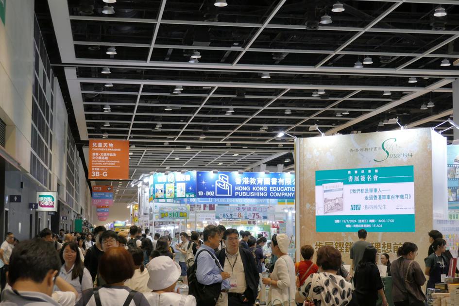 开展第三天的香港书展现场。(图/新周刊记者 摄)7月17日,第34届香港书展如期在香港会议展览中心开幕。今年香港书展以“影视文学”为年度主题,以“从香港阅读世界:漫游光影文字间”点题,通过“焦点导演”“经典改编影视作品”等分享和展览,让读者体会影视与文学之间的紧密连接。