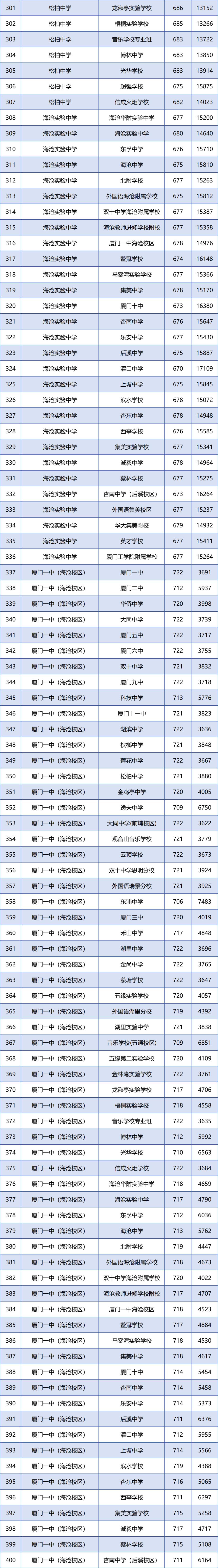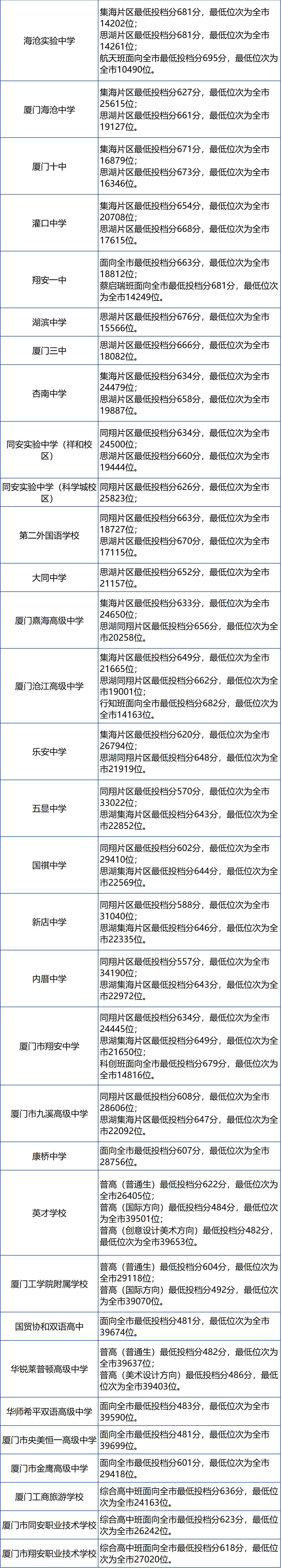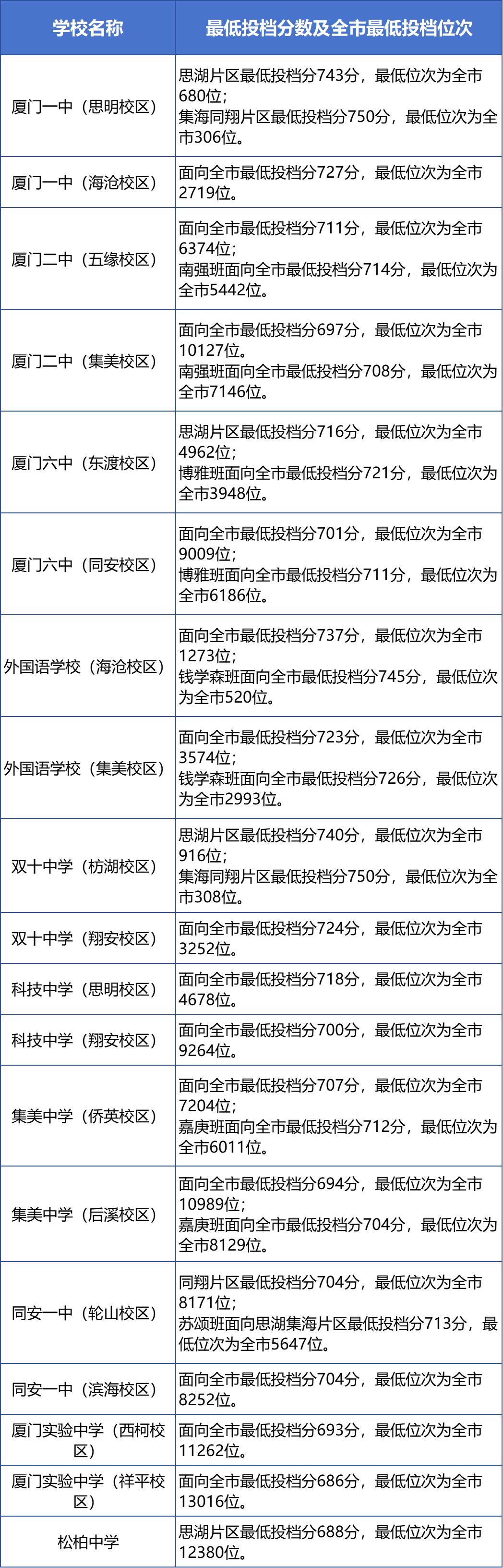 刚刚!厦门市2024年中招普高学校最低投档分数和位次公布→