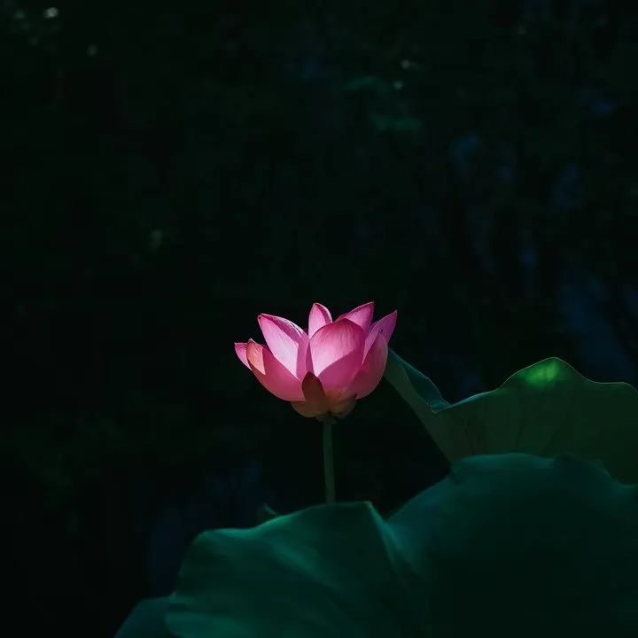 行至中庭附近时,一名安保人员忽地闻到一丝淡淡的清香,待寻到源头时,惊喜地看到一抹粉红直立于一团绿叶之上。