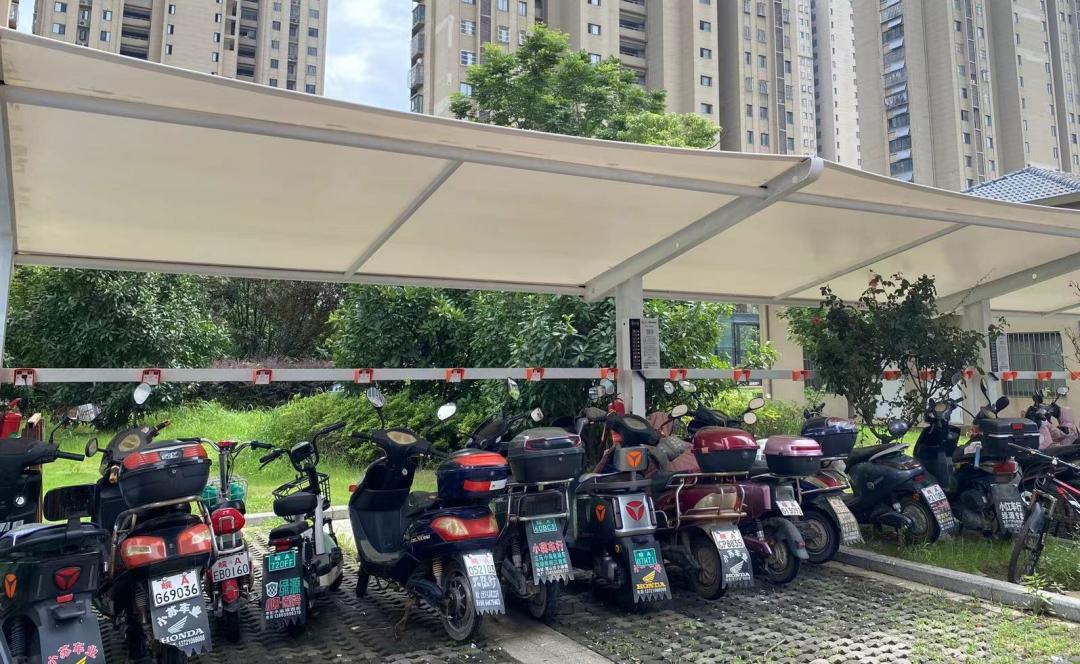 经过前期征集居民意见和实地调研、规划设计,五十墩小区共建设了11个停车棚,总面积320平方米,可以容纳160辆非机动车同时停放及充电,惠及小区居民约500人。