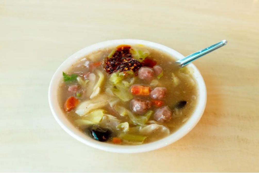 纯肉馅儿的肉丸自然Q弹,点缀着腐竹、木耳、黄花菜、豆腐,是西安少有的清淡口味。无需太多调味,就能作为夜半深宵打牙祭的最佳伴侣。