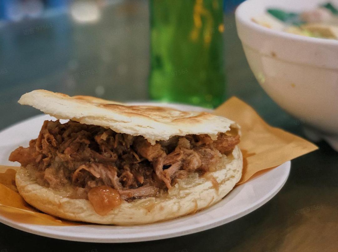 腊汁已经与肉形神合一,油脂非常丰润,哪怕隔着纸巾也一直在疯狂滴油,但掺了些肥肉的肉夹馍就是震撼人心的美味,在纯粹的油脂肉香中完全迷失自我,一口咬下去,感到直冲天灵盖的美味,只有中华小当家的形容词才能配上这份肉夹馍之光。