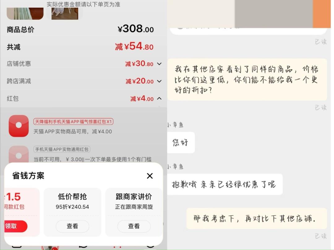 如果说“高价限流”是在降低利润,伤商家们的财,那五月末淘宝推出的“天猫AI讲价小助手”则让商家费神。