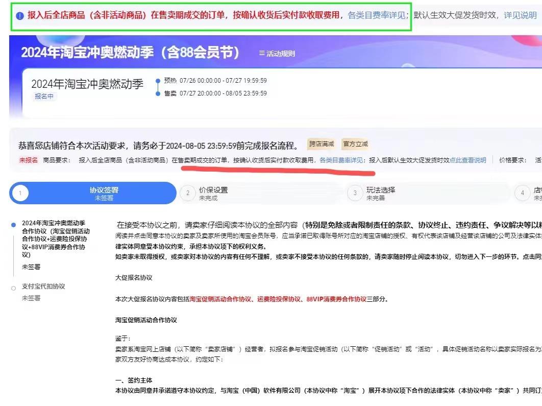 但商家似乎并未因此松口气。锌刻度留意到,不少商家提及,日前淘宝开始首次收取活动服务费。有商家在小红书上发布笔记称:近期商家报名参加“冲奥燃动季”活动将会被收取“软件技术服务费”,按确认收货后实付款收取费用,各类目费率不同,最高5%。而这显然会进一步压缩商家利润空间,因此,有不少商家表示不愿参加活动,“但不参加就没有流量”。