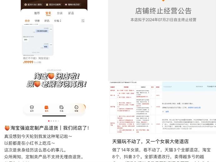 近两年有不少商家退店闭店如今,前有“仅退款”,后有“低价战”,再加上如今的活动佣金,各大电商平台一面争夺商家,一面又不断将商家围困。在各大社交媒体平台,已经不乏商家表示,“不参加任何活动了”或是“坐等店铺倒闭”。