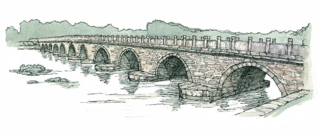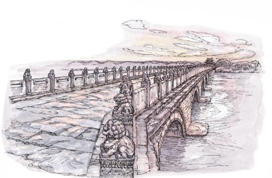 卢沟桥位于北京郊区的永定河上,是始建于金代的石质联拱桥。桥上石栏望柱间雕有数不尽的狮子,这些千姿百态、灵动喜人的石狮使得游人将“数卢沟桥上有多少狮子”成为游览必做的一桩趣事。元代来华的意大利人马可·波罗在他轰动欧洲的游记中写道:“河上有一美丽石桥,各处桥梁之美鲜有及之者……它是世界上最好的,独一无二的桥。”自此,卢沟桥的美流传到西欧各国。欧洲人习惯称卢沟桥为马可·波罗桥。