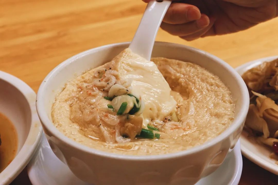 而点的尝鲜小菜——虾仁鸡蛋羹和6元/个的狮子头都很不错。鸡蛋羹嫩滑;瘦肉做成的狮子头,很容易就能戳开,吃起来带点咸,表皮酥脆但内里很是软糯。这俩各来一勺,混搭着米饭吃,刚刚好。