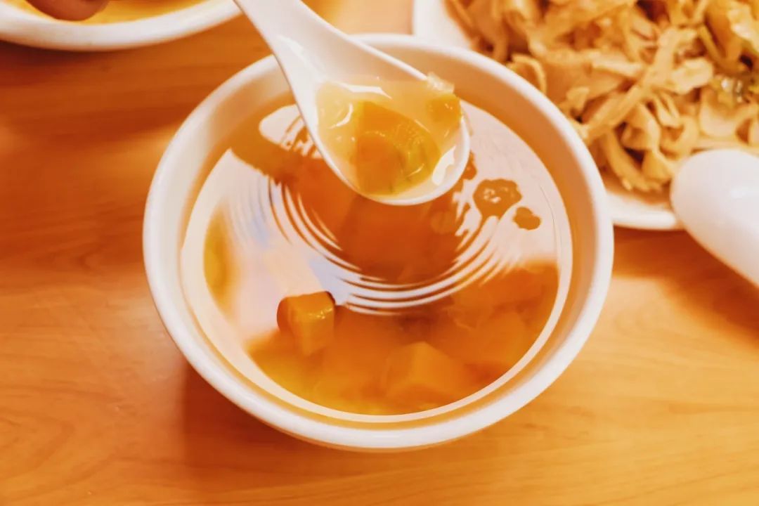 饭后,再喝上一碗微甜的南瓜汤。人均不到30元的一餐,可以搭配这么多菜品,性价比还是很高。不过,很奇怪的是我和@牙尖儿一致觉得,他家的外卖味道比店里更好吃。