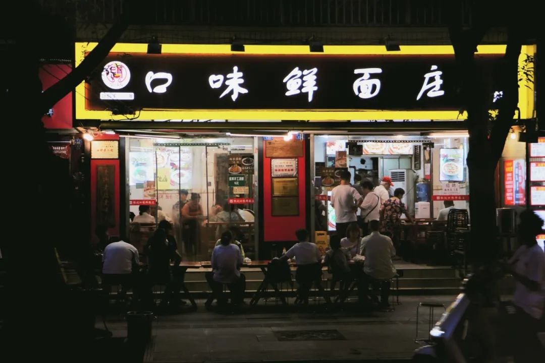 口味鲜面庄,作为成都北门的资格老店,无论白天黑夜,经过平福路时,总能看到一派热闹景象。