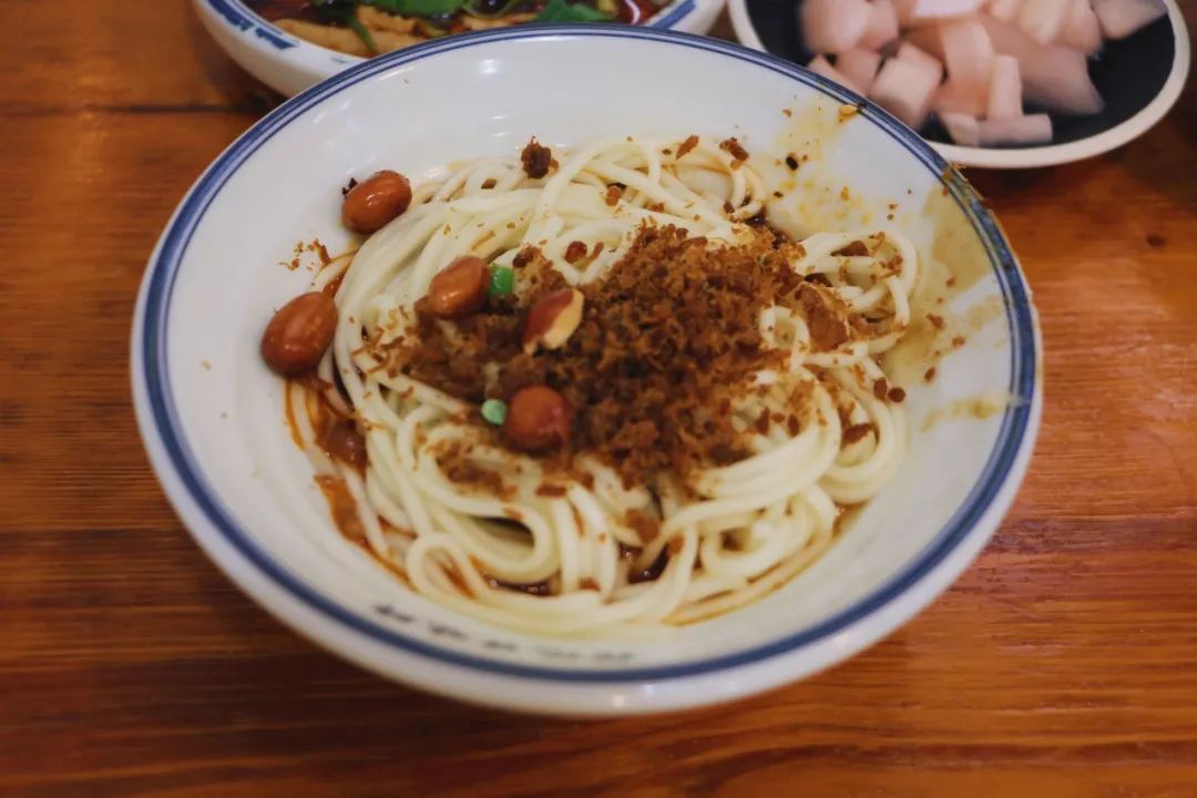 抄手、面、炒饭都是店里的特色。我个人比较喜欢脆哨面。不同于贵州贵州脆哨的颗粒感,他家的脆哨看起来像肉松,非常细密。与麻酱、蒜末等调料搅拌均匀之后,有点微微的甜咸口,面吃起来也很劲道。
