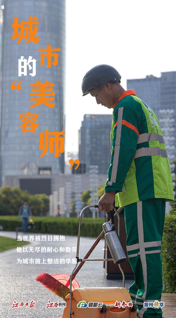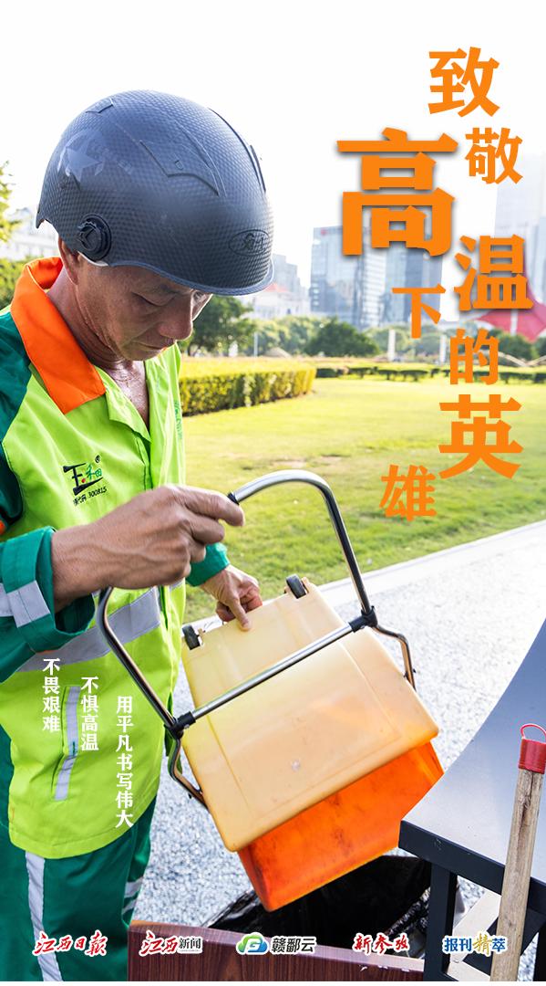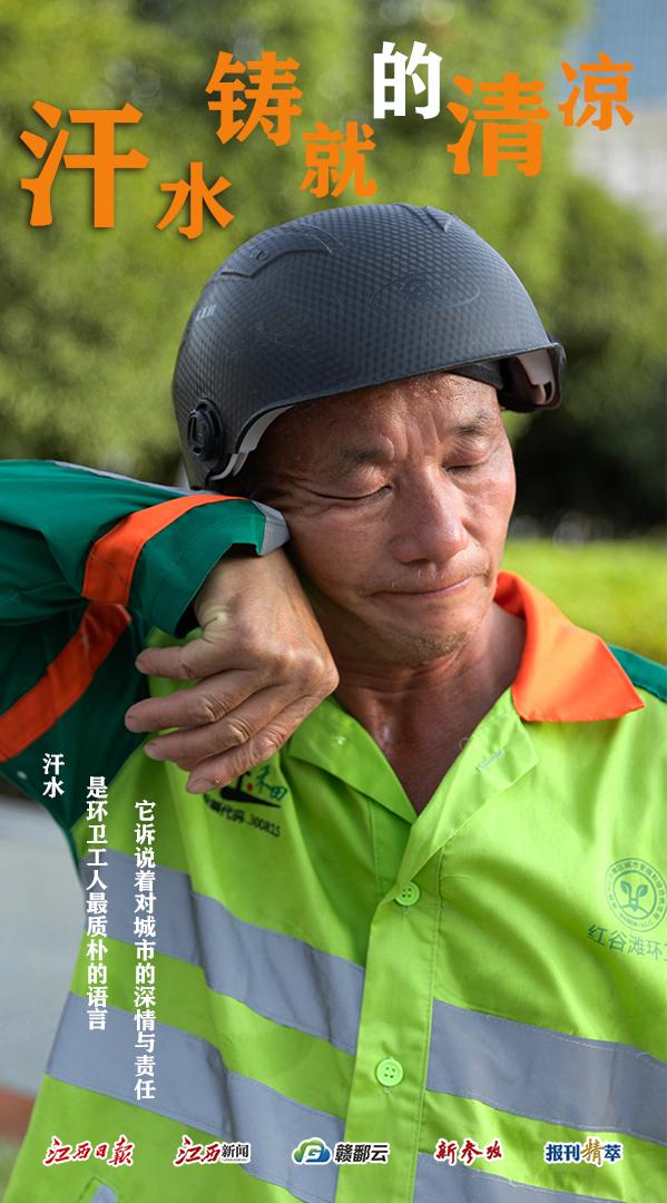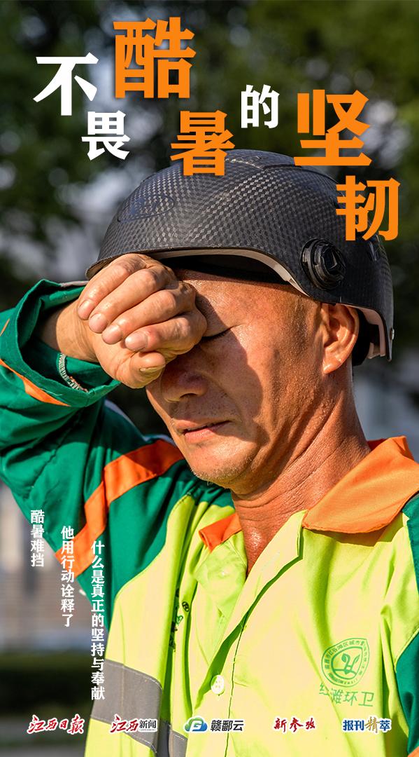 高温下的坚守系列报道之一:城市“美容师”炎炎夏日,江西持续“烧烤”模式,但在这片炽热的大地上,有这样一个群体,他们顶着烈日,用汗水擦亮城市,让城市在酷暑中依然焕发光彩。他们就是被称为城市“美容师”的环卫工人。今天,我们聚焦一名普通的环卫工人,以一组海报向他们致以敬意和感谢!