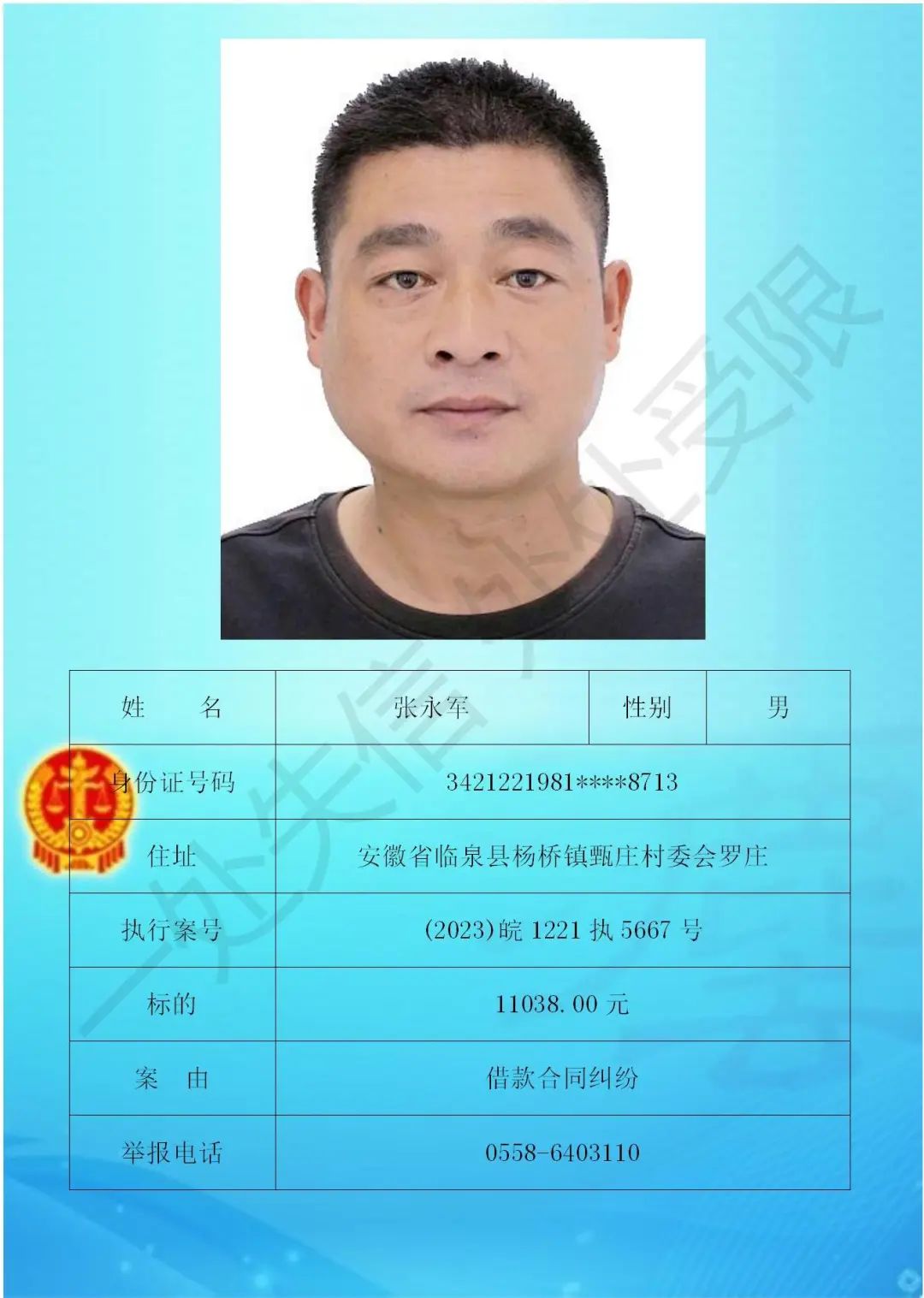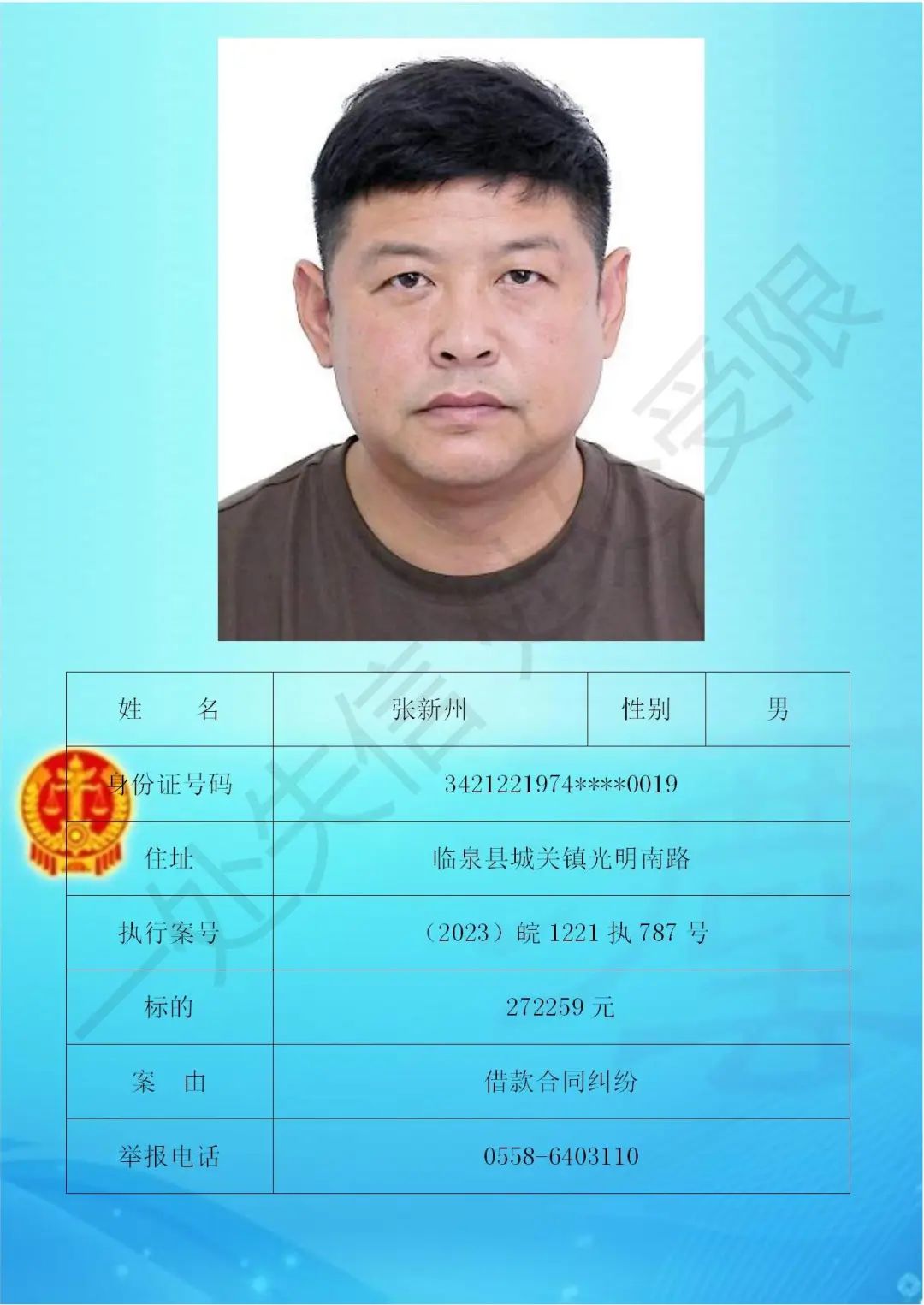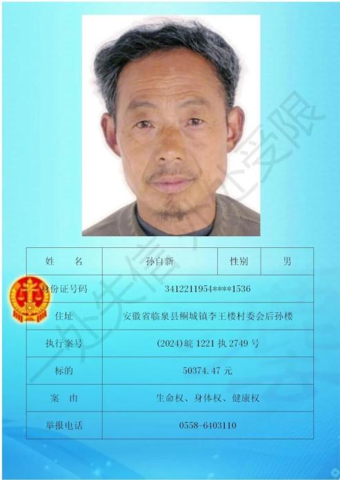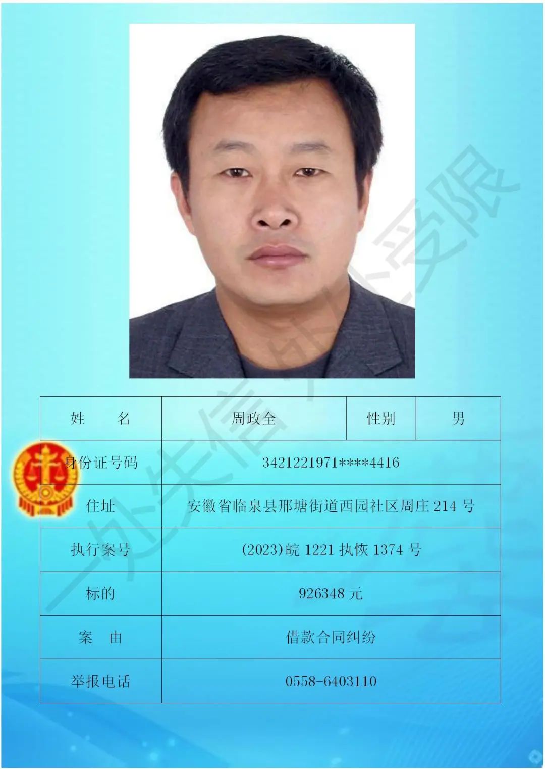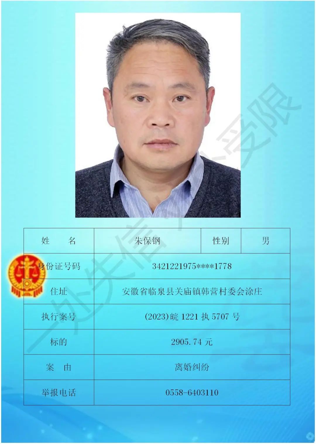 临泉法院:失信被执行人曝光台(2024年第7期)