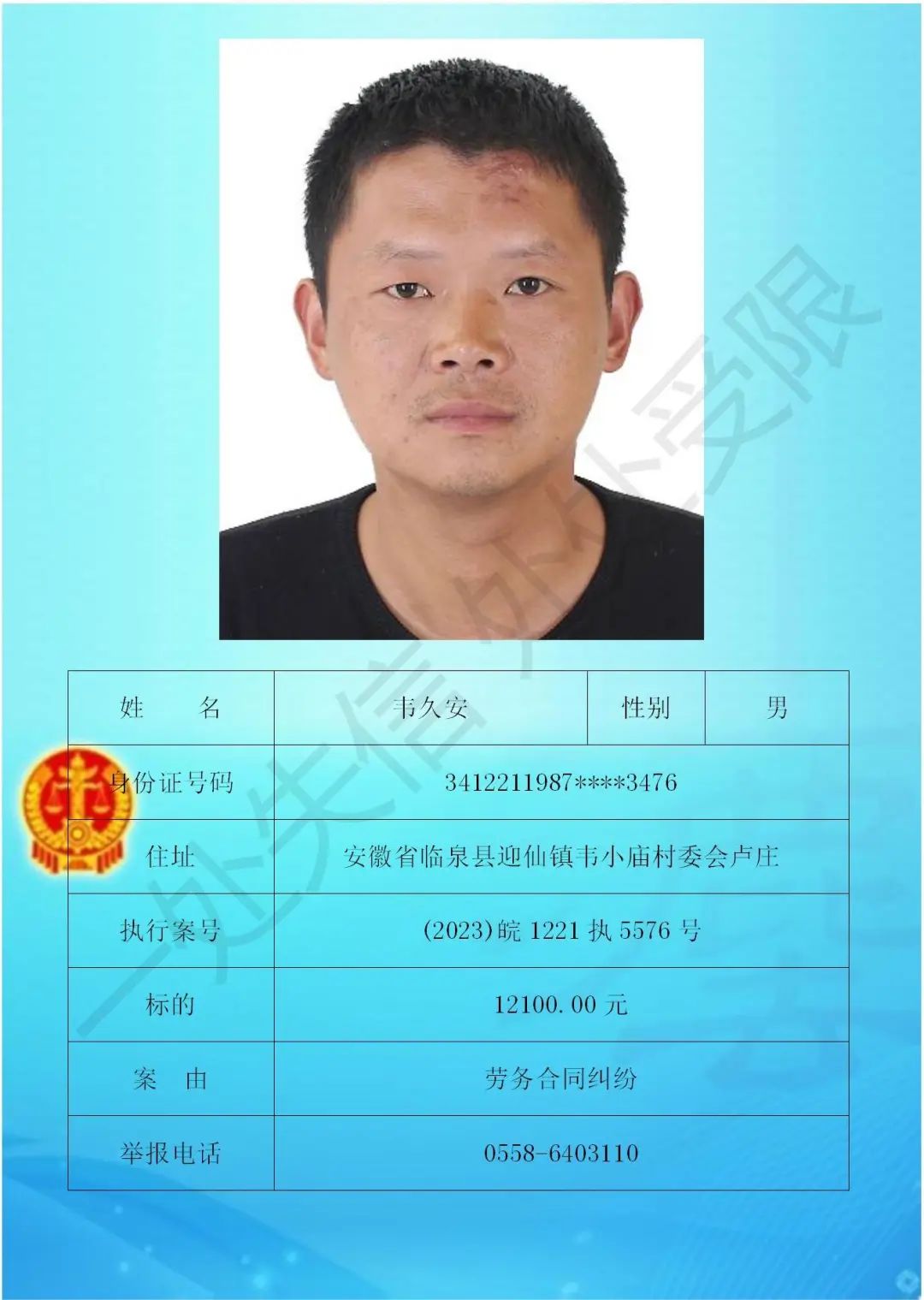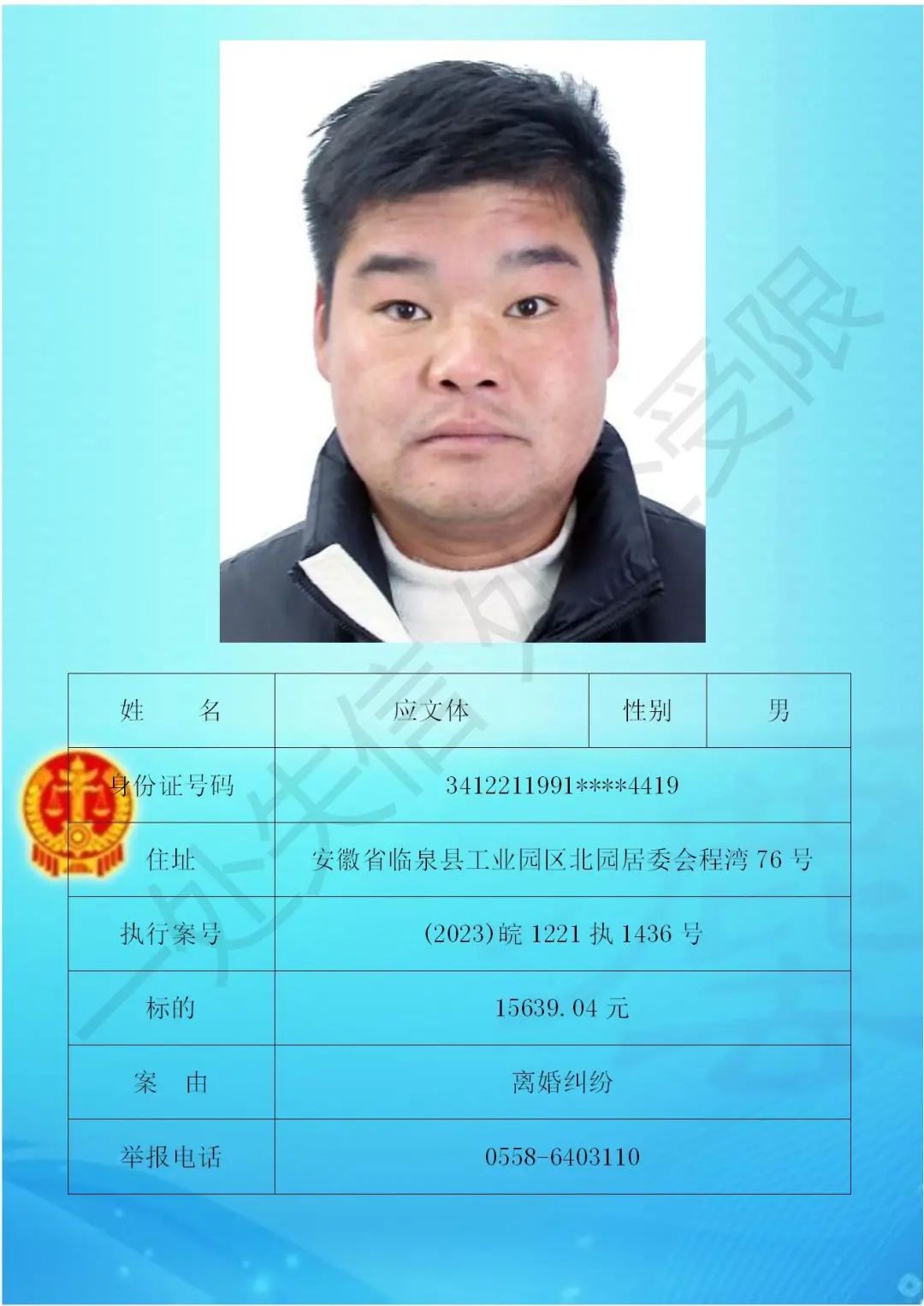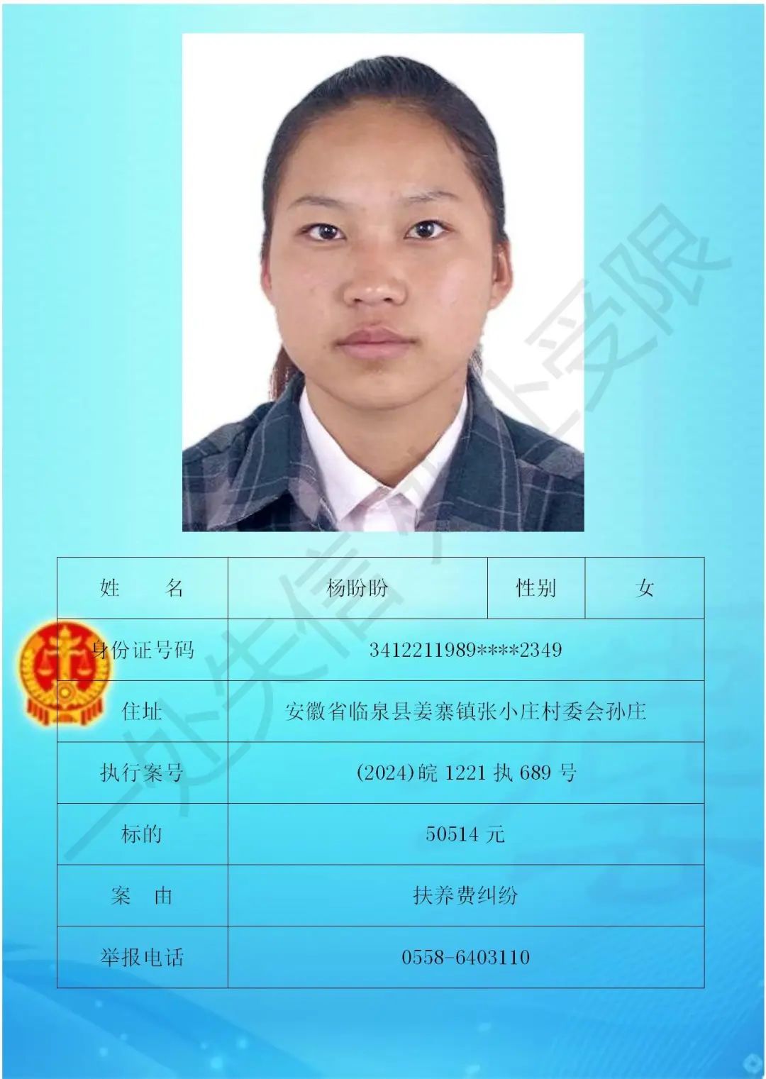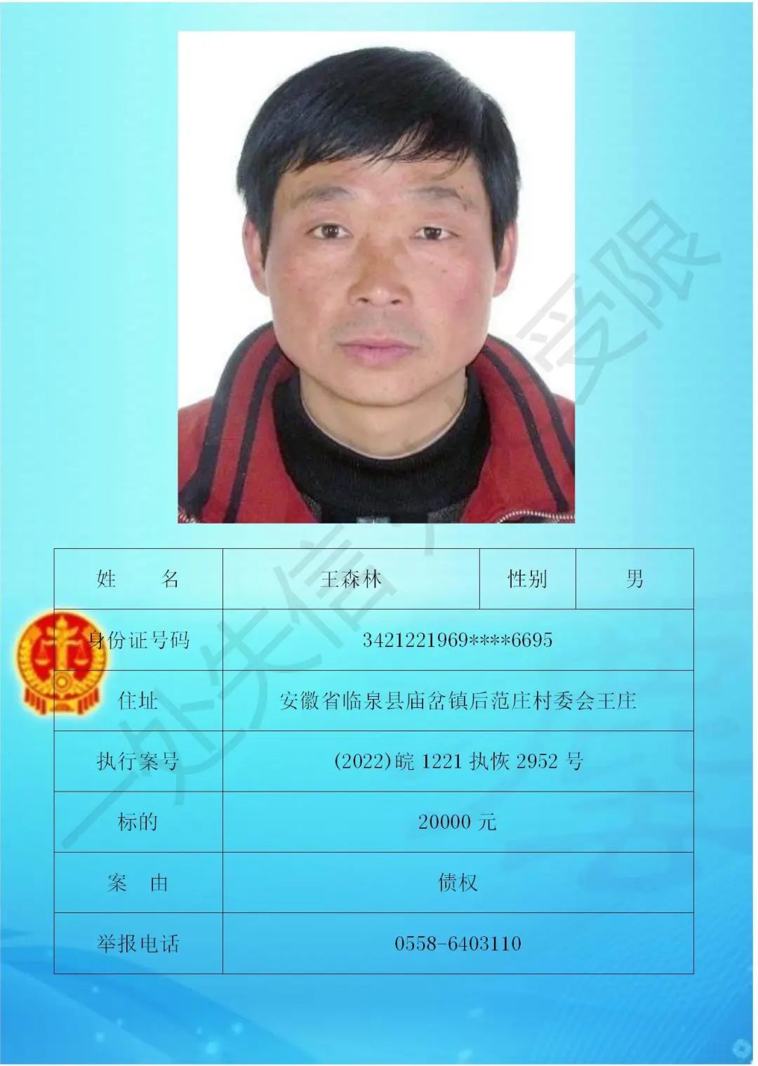 临泉法院:失信被执行人曝光台(2024年第7期)
