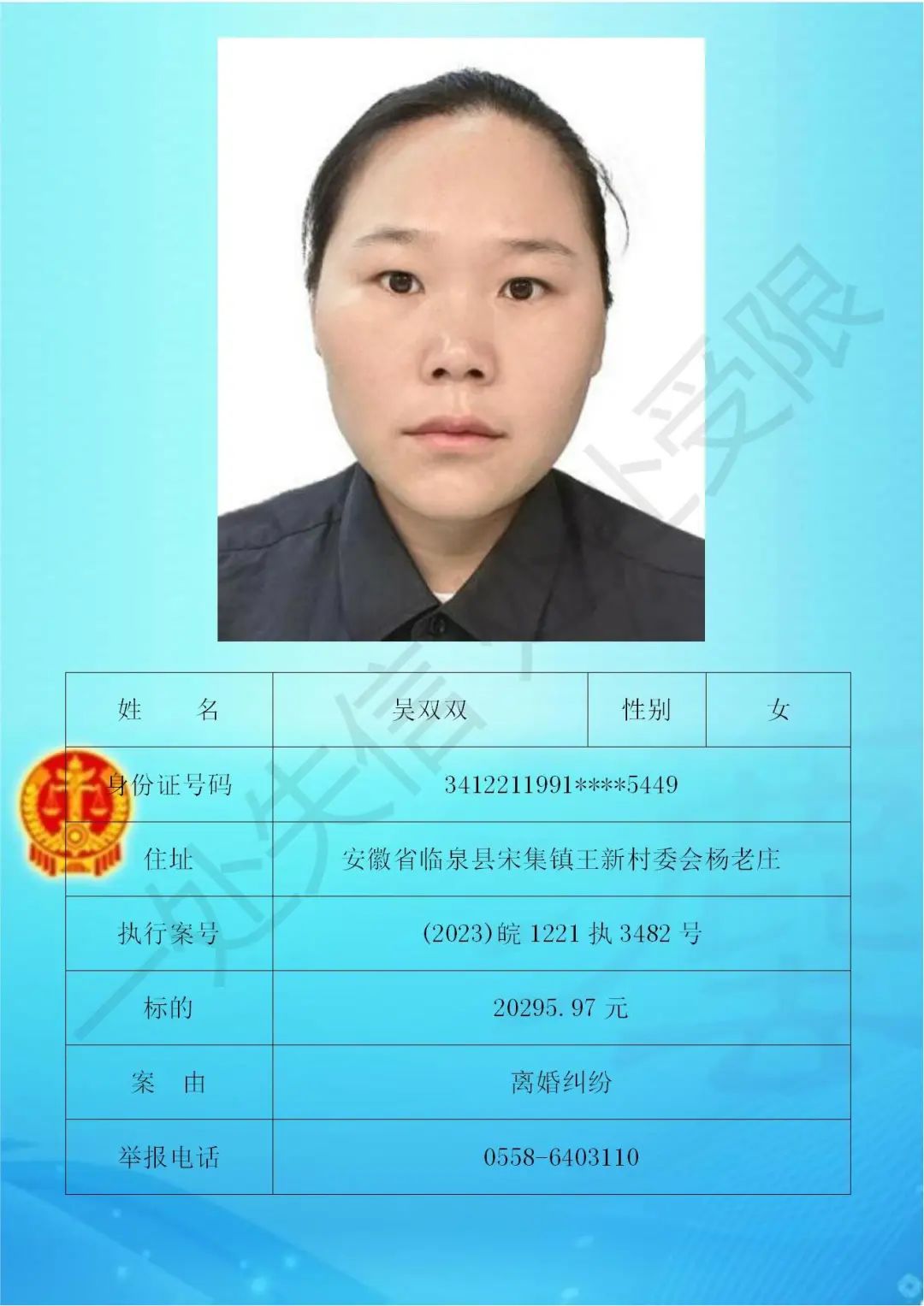 临泉县人民法院以上名单信息以全国法院失信被执行人名单信息公布与查询平台为准,截止发布时间以上被执行人尚未履行义务。