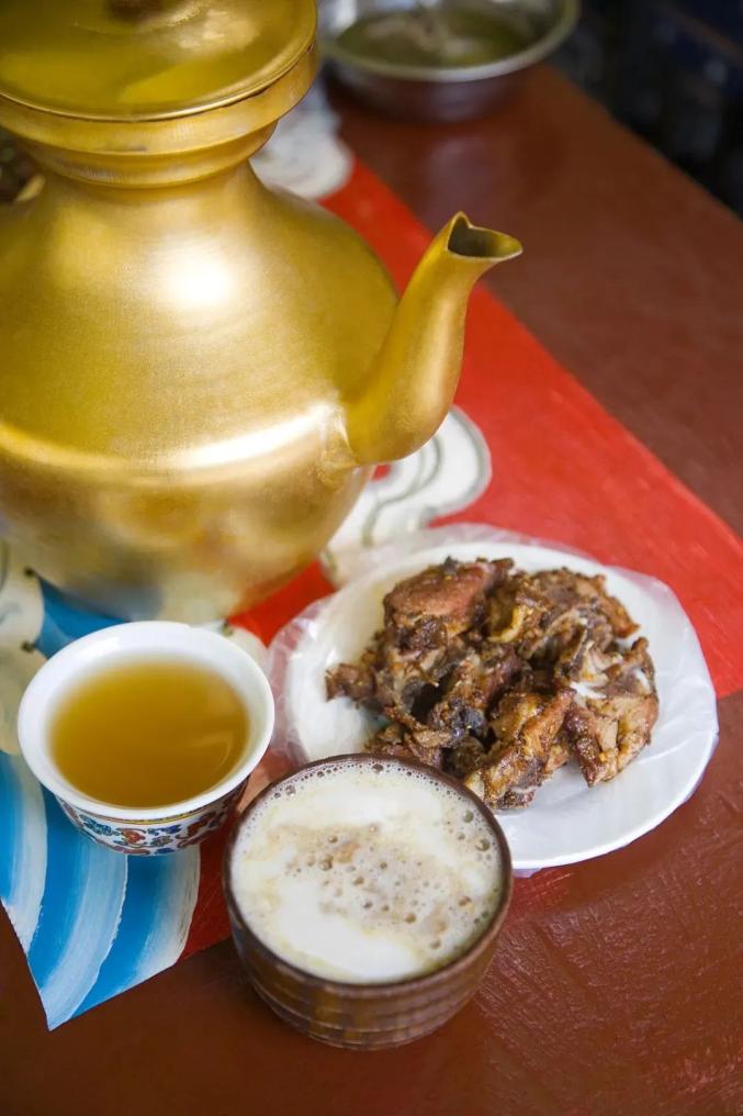 每一个来林芝的人,必点酥油茶。酥油茶是西藏饮食文化中极具代表性的存在,有一番让人欲罢不能的咸香风味。冬日清晨里,一碗筋道的藏式面条,一盘酥脆的炸土豆,一壶热腾腾的酥油茶,这样的林芝早茶,直接香迷糊了。