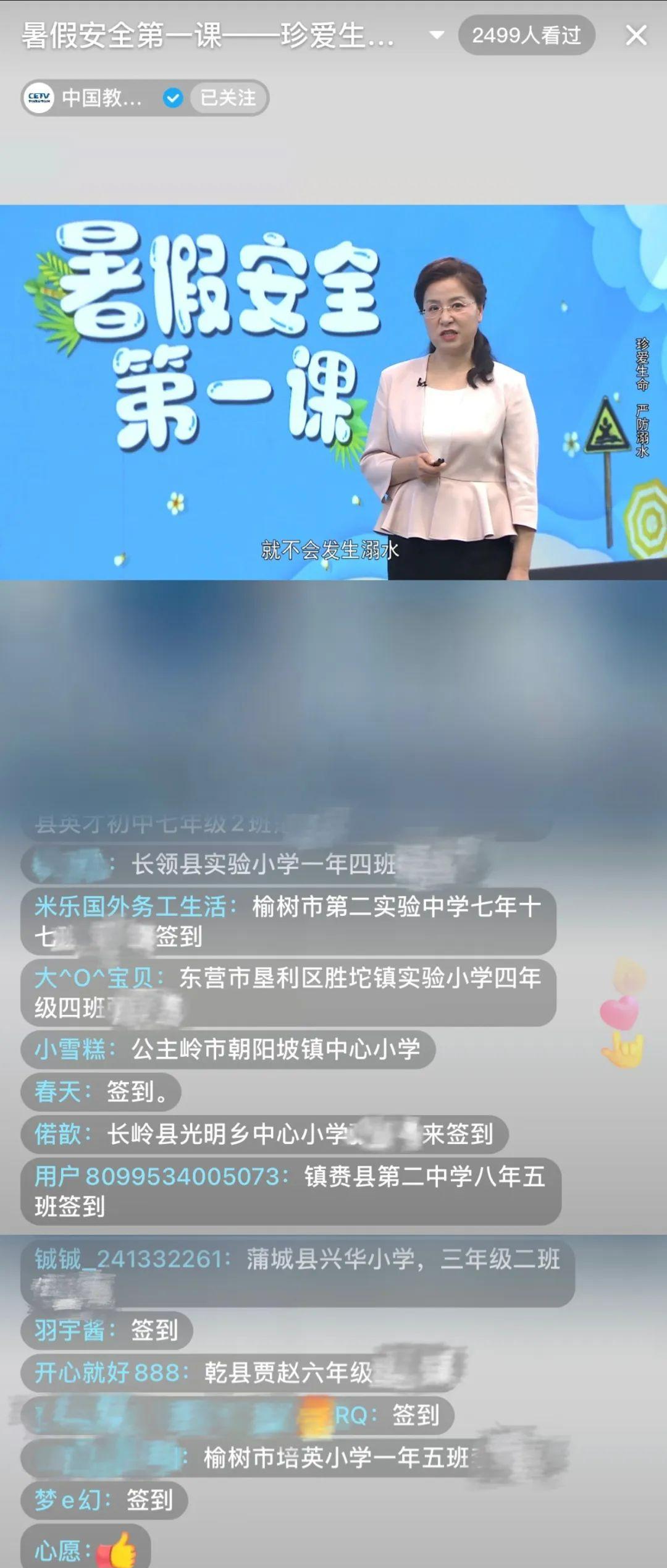 同学们通过直播学习防溺水知识打卡签到