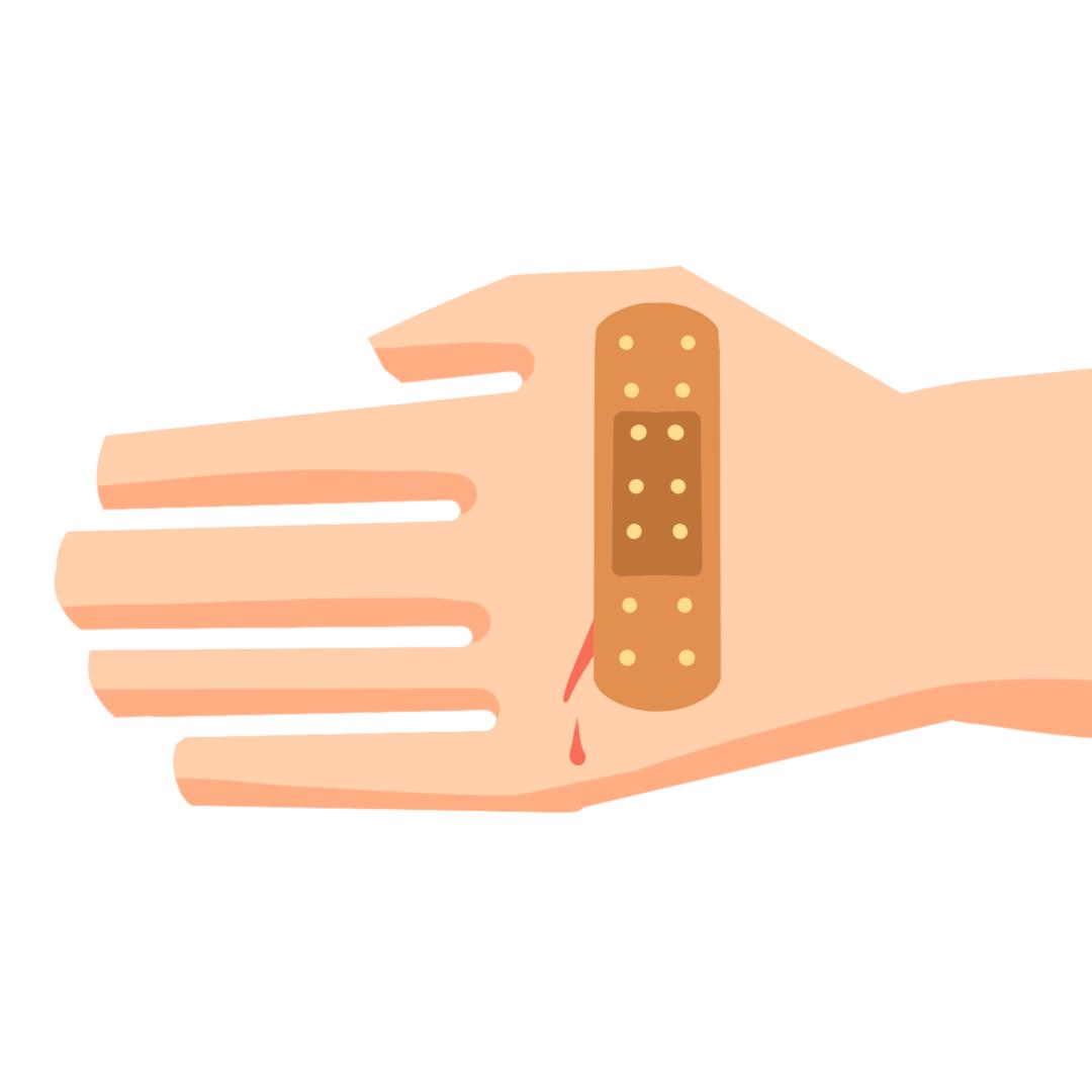 用创口贴或干净的纱布、手绢等包扎伤口。