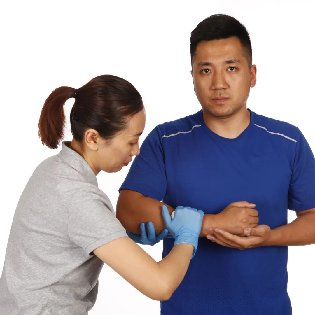 用敷料或干净的布料覆盖在伤口上,用手直接持续用力压迫止血。如果敷料被血液浸透,不要更换,再取敷料覆盖在原有的敷料上继续压迫止血;