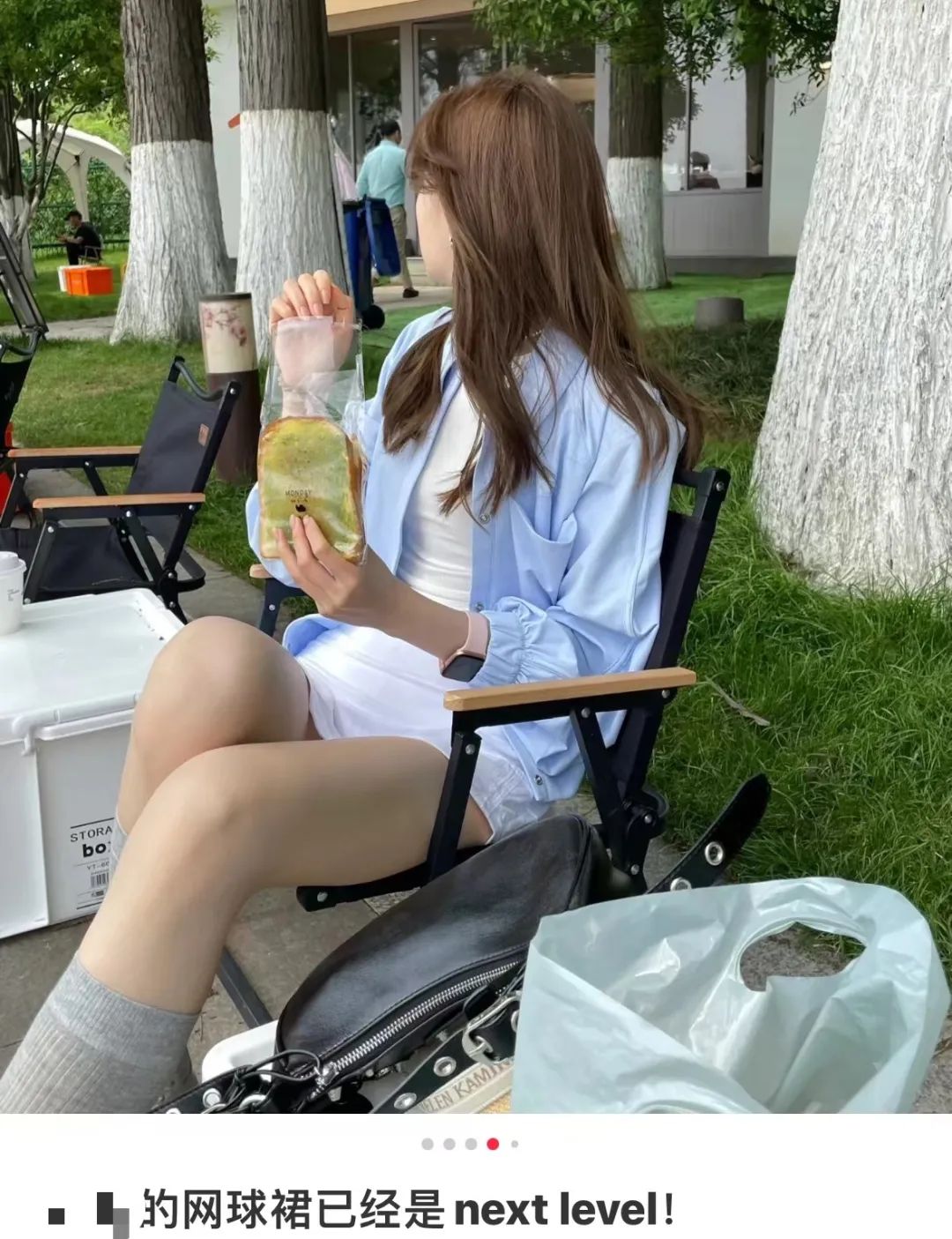 甚至可以穿着网球裙野餐/图源:@Q仔无论会不会打网球,网球风穿搭都成了大城市白领最新潮的消费方向。在某lu的门店里,网球裙如同复制粘贴般一一排列,微妙的颜色区别,甚至堪比粉底液极度细分的色号。