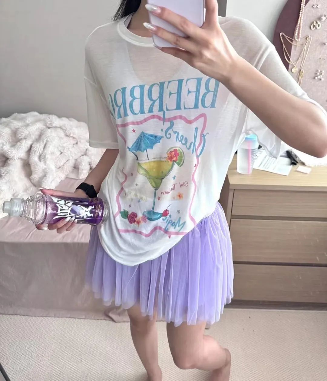 “平时上班穿再贵的衣服,也总是死气沉沉,风琴百褶裙却有着像JK制服那样的洋气。小时候就很羡慕扎着马尾穿网球裙的元气美女,二十几年审美也没变过,也算是小小地成为了自己期待的模样。”