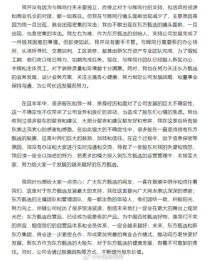 原标题:《董宇辉从东方甄选离职,发布长文回应!俞敏洪发声→》