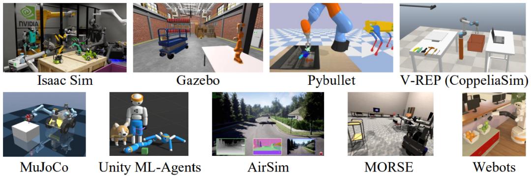 具身智能仿真平台对于具身智能至关重要,因为它们提供了成本效益高的实验手段,能够通过模拟潜在的危险场景来确保安全,具有在多样环境中进行测试的可扩展性,具备快速原型设计能力,能够为更广泛的研究群体提供便利,提供用于精确研究的可控环境,生成用于训练和评估的数据,并提供算法比较的标准化基准。为了使智能体能够与环境互动,必须构建一个逼真的模拟环境。这需要考虑环境的物理特性、对象的属性及其相互作用。如下图所示,本综述将对两种仿真平台进行分析:基于底层仿真的通用平台和基于真实场景的仿真平台。