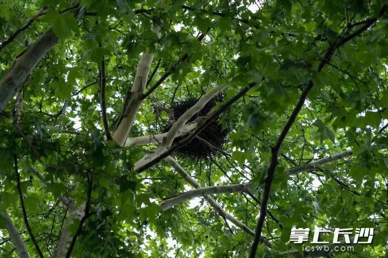 在洲中间一棵高大的法国梧桐上,走读团还发现一个由枯树枝搭建的喜鹊窝。“这鸟窝看似简陋,实际结构高级、是鸟窝中的豪宅。搭窝的树枝看似杂乱无章,但每根都交错吃力,非常牢固,甚至可以抗击七到八级大风。”周晓明说。