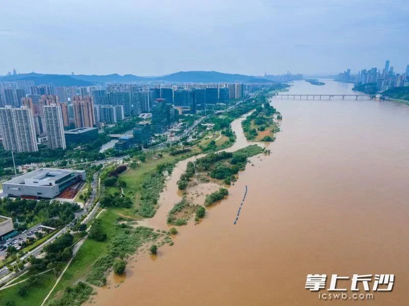 地势低平的柏家洲在雨季常会被淹,图为2024年6月湘江涨水时的柏家洲。