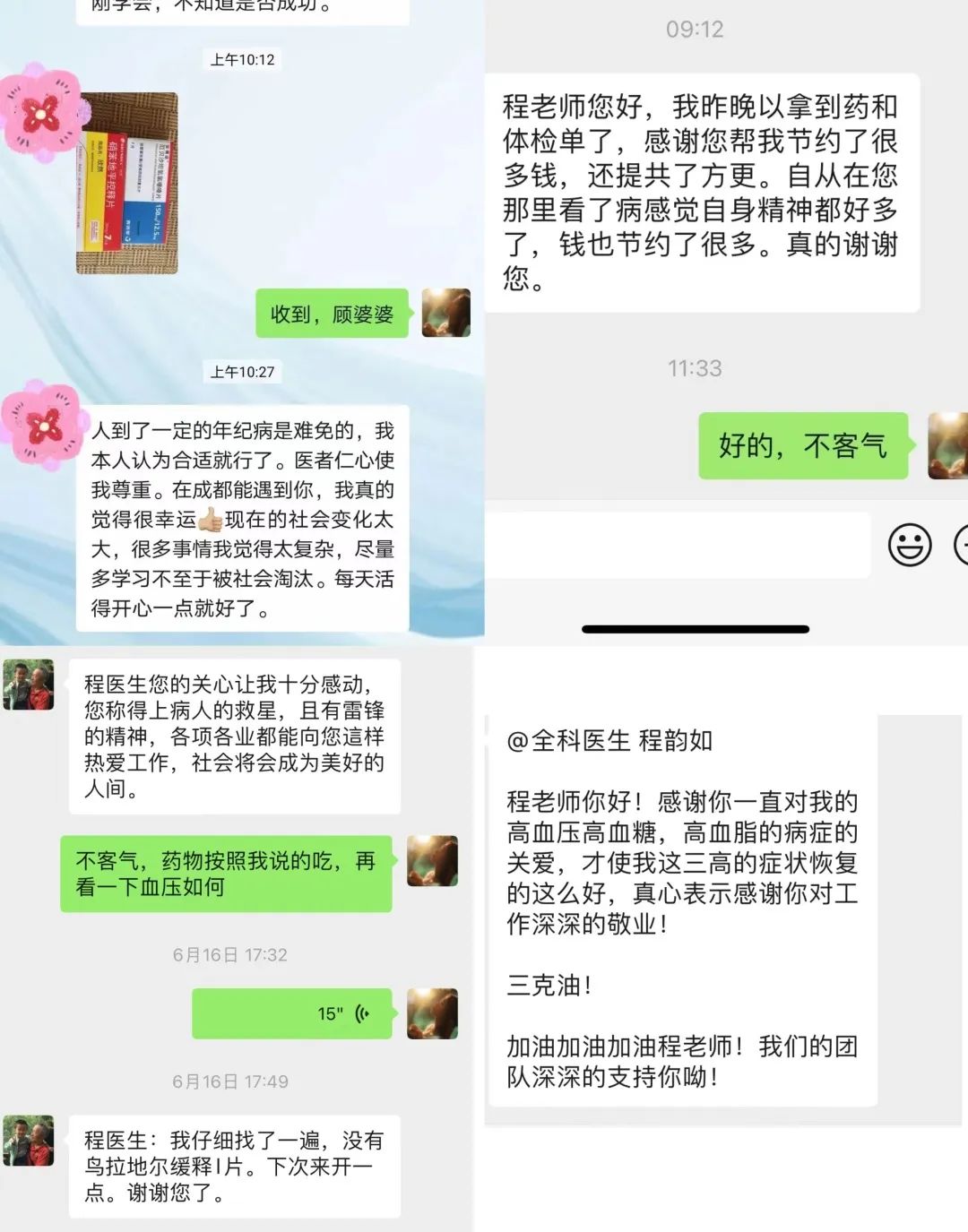 “我就是一个普通人,能遇到如此真诚、执着、能设身处地为患者着想的医生是我们的幸运。”而今,周师傅的家人们都成了程韵如的“粉丝”,“以前不知道体检报告怎么看、药物怎么服用、看病不知道挂什么科,去找谁,现在感觉自己有医生朋友了,有依靠了,心里暖暖的。”
